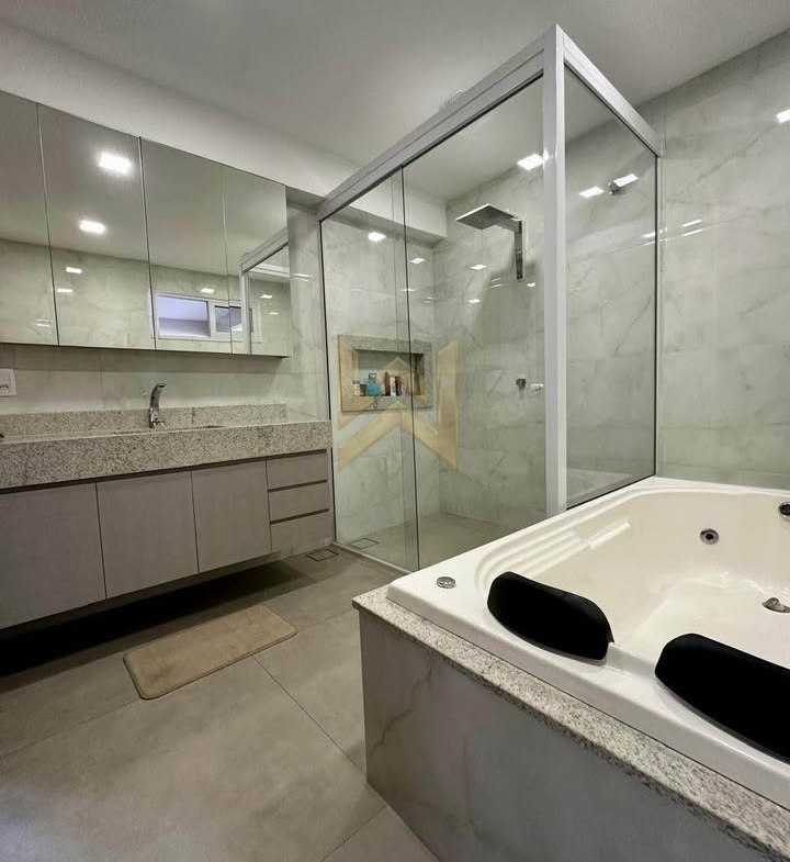 • Banheiro da suíte com banheira de hidromassagem, além de 2 banheiros completos e 1 lavabo